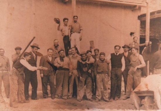 Año 1940: Emilio Baraboglia (con sombrero) Eduardo González- Pedro Domina, Antonio Domina en el centro de la foto- Gonzalo Somoza – Vicente Madoi – Saúl Scabuzzo – Ángel Nota – Martìn R. Lara (Yela) y varios más que no he podido identificar.-